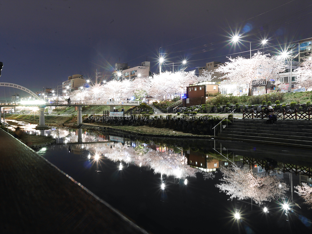 먼저 위치는 6호선 응암역에서 시작을 한다. 불광천을 따라서 내려가면서 구경하면 된다. 물에 반사되어 비치는 모습이 이뻐 찍어보았다. 야간에는 노출을 길게 (본 사진은 30초), 조리개는 값을 높이고 ISO는 200 정도로 맞춰주면 깔끔한 사진을 얻을 수 있다.