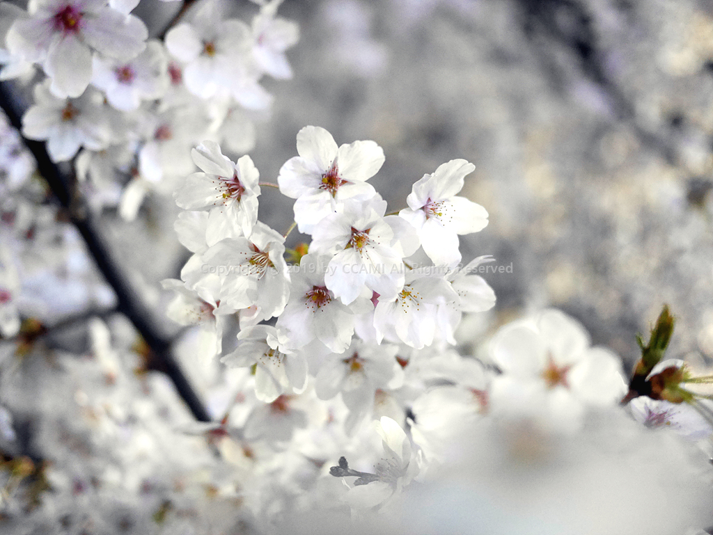 이렇게 너무 가까이에서 찍으면 또 뭔가 꽃에만 집중되어 보인다. 아웃포커싱을 줘서 앞에 있는 꽃에 초점을 맞추면 뒤에 있는 많은 꽃들이 날아가버려 이 또한 느낌이 있긴 하지만 벚꽃은 꽃 하나하나를 보는 것 보다는 너무 많지 않게, 또 너무 적지 않게 보는 것이 이쁘다.