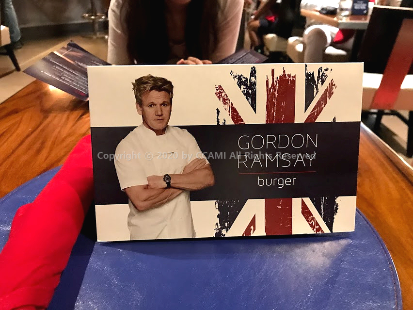 메뉴판은 위 이미지와 동일하다. https://www.gordonramsayrestaurants.com/assets/1-Menus/USA-Restaurants/GR-Burger-Menu-current-14.03.2019-1.pdf 링크를 참고해도 된다. 방문하면 똑같은 메뉴판을 볼 것이다.