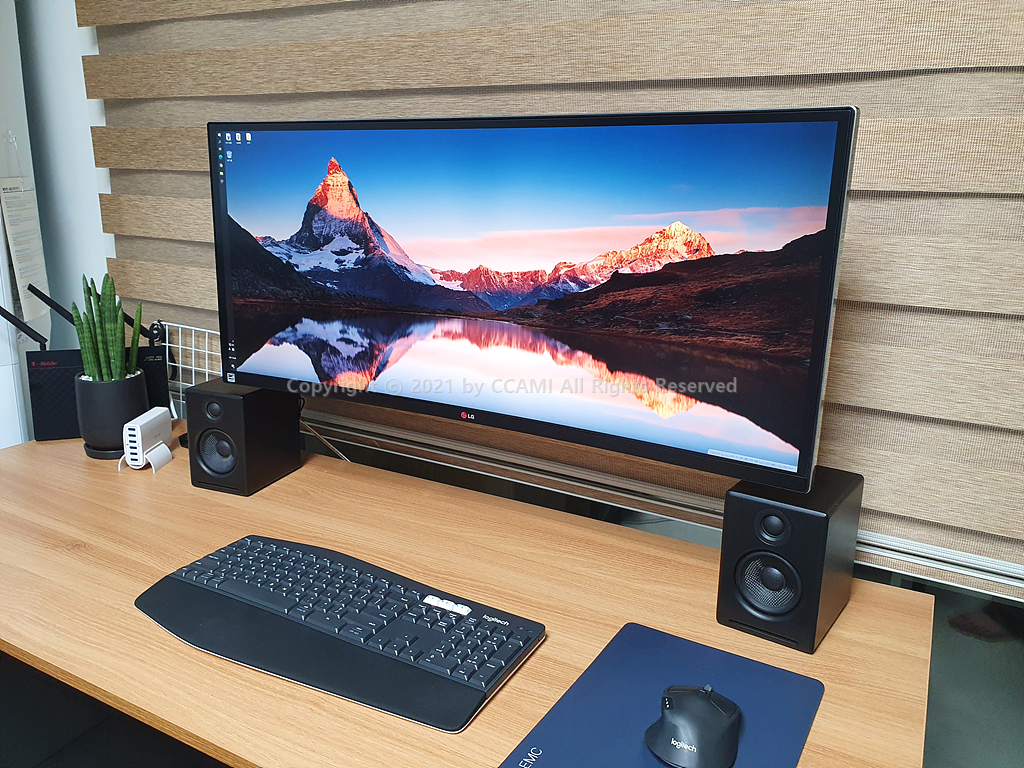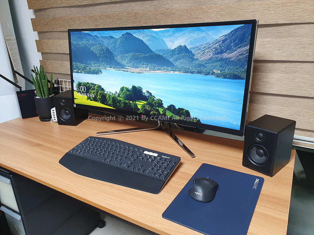 코로나 시대가 되면서 재택근무도 많아지고 홈오피스를 구성하는 집이 많아지고 있습니다. 집에서 듀얼 모니터 하기에는 책상이 좁고, 하지만 듀얼모니터 있으면 업무 효율도 높아지니 모든 것을 충족하기 위한 울트라와이드 모니터에 대한 수요가 많아지고 있습니다. 울트라와이드 모니터를 사용하면 모니터 하나로 듀얼모니터의 효과를 누릴 수 있기 때문에 공간적인 면에서도, 인테리어적인 면에서도 훨씬 유리합니다.