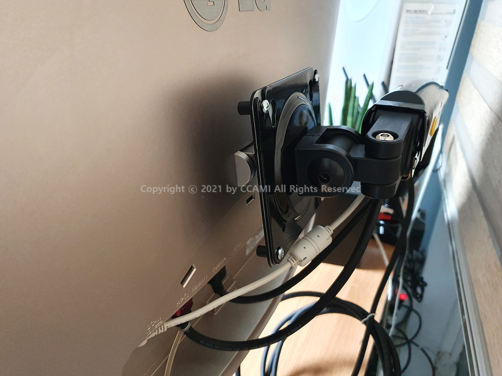 위 사진과 같이 연결 모니터 스탠드 고리 부분에 철판을 나사로 고정합니다.